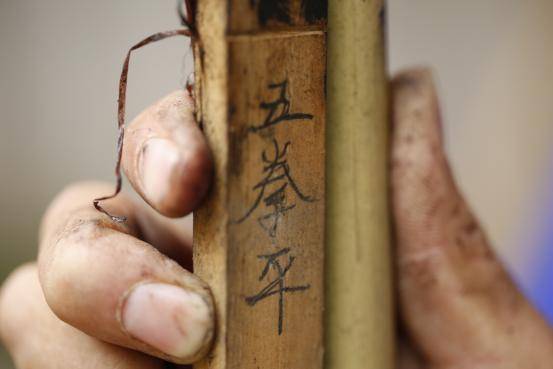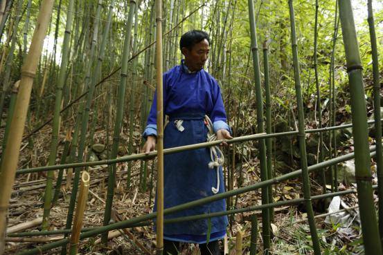 發(fā)音跟笙管的長短有關系,它必須要配對。如這是六拳的,這一管必須和這一管關節(jié)是一樣的,所以它們聲音都是一樣的。差一點可以,不能差太多。有時也找不出來。山上長出來的(竹子)不可能完全都是一致的。比如這一對就挺合適的。這一管和這一管是一樣的。不長不短,它的和音就比較好。