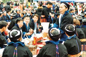 每逢重要節(jié)日,白褲瑤群眾都有舉辦長(zhǎng)席宴的習(xí)俗。以前,芭蕉葉當(dāng)作盤(pán)子,芭芒干折成筷子,一個(gè)飯團(tuán)、一塊牛肉,再加一碗酒,就是長(zhǎng)席宴的全部。現(xiàn)在改變了很多,但不變的是白褲瑤自然、和諧、平等的美德。2019年2月拍攝。