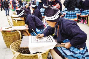 白褲瑤服飾制作需要幾個(gè)月的時(shí)間,經(jīng)過(guò)紡紗、織布、描圖、蠟染、刺繡、縫制等30多道工序,其中許多工序都受季節(jié)和天氣變化的影響。