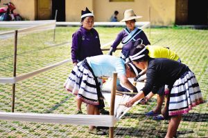 跑紗。白褲瑤的婦女們是天生的藝術(shù)家,女子要學(xué)會(huì)一整套的制作工藝。織布前,先把紗線理好繞成捆。大多是幾個(gè)鄰居互相幫忙才能完成。在跑紗過(guò)程中,也是婦女們交流技藝、聊家長(zhǎng)里短的開(kāi)心時(shí)刻。2014年5月拍攝。