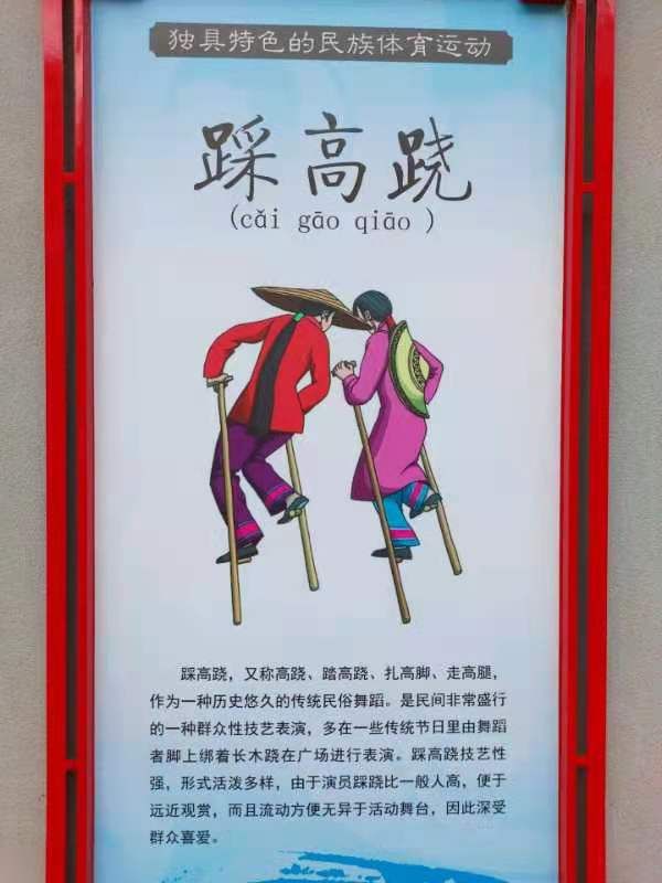 踩高蹺,又稱高蹺、踏高蹺、扎高腳、走高腿,作為一種歷史悠久的傳統(tǒng)民俗舞蹈。是民間非常盛行的一種群眾性技藝表演,多在一些傳統(tǒng)節(jié)日里由舞蹈者腳上綁著長木蹺在廣場進(jìn)行表演。踩高蹺技藝性強(qiáng),形式活潑多樣,由于演員踩蹺比一 般人高,便于遠(yuǎn)近觀賞,而且流動(dòng)方便無異于活動(dòng)舞臺(tái),因此深受群眾喜愛。