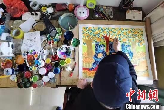 農(nóng)民畫畫家在作畫 周孫榆 攝