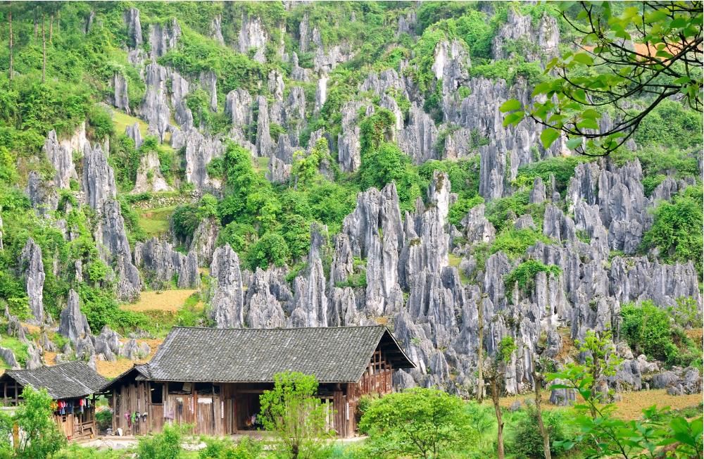 龍門村具有得天獨厚的旅游資源,這里的石林是地球上同緯度地區(qū)迄今發(fā)現(xiàn)的發(fā)育最好、生態(tài)保持最佳、?保存最完整、出露面積最大的極具科普性和觀賞性的連片喀斯特石林。?龍門村石林與樹林交相輝映,美不勝收。空間上連片分布,?類型眾多,包含了石芽發(fā)育從幼年到青年到老年的各種形態(tài),有?針狀石林、劍狀石林、塔狀石林、柱狀石林、城堡狀石林。林區(qū)?形狀多變,景色秀麗,能從小中見大、大中見巧、巧中見奇、奇?中見幽。?龍門村石林還形成了許多惟妙惟肖的象形景觀,如老虎石、?雄鷹對峙、鬼臉石、四大金剛、三仙迎客等,極具觀賞性。石林景區(qū)的荊竹園是清白蓮教白號軍古戰(zhàn)場,貴州省重點文物保護單位。