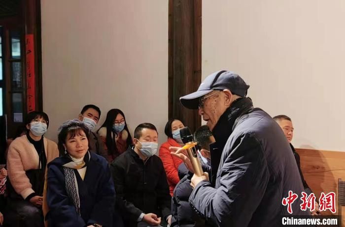 圖為陳茂錦正向現(xiàn)場(chǎng)觀眾介紹閩箏。 葉秋云 攝