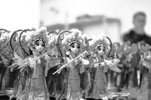據(jù)貴州盛華職業(yè)學(xué)院唐人坊非物質(zhì)文化遺產(chǎn)傳承學(xué)院副院長秦貞錚介紹,“唐娃娃”全都是手工制作,十分復(fù)雜,完成一個娃娃可能要經(jīng)過上百道工序?!啊仆尥蕖母叨入m然只有30厘米,但這些人物穿的衣服幾乎是京劇劇裝的原樣縮小版。它們的妝容都是手畫的,頭發(fā)也是手工盤上去的,帽子采用傳統(tǒng)掐絲工藝?!?/p>