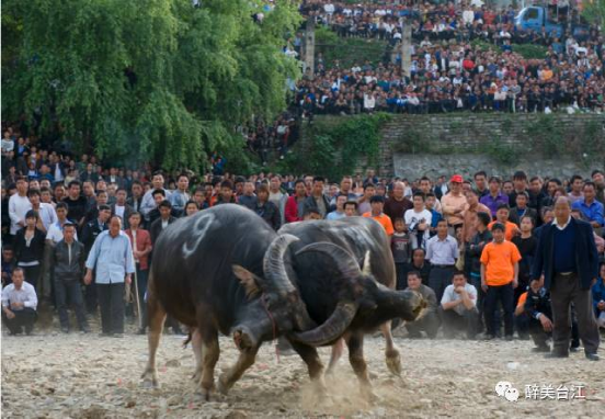 ▲ 斗牛之牛,都是專(zhuān)門(mén)精心飼養(yǎng)的,不從事耕地、拉車(chē)、推磨等勞作,均為雄性水牛,分為寬角、窄角兩個(gè)級(jí)別。斗牛賽制,先為淘汰賽,決斗時(shí)改為單循環(huán)賽,最后勝出者為年度牛王。斗牛場(chǎng)面十分慘烈,動(dòng)人心魄,觀眾少則數(shù)百,多則數(shù)萬(wàn)。