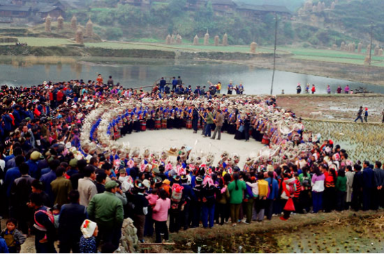 貴州雷山苗族至今仍保留“以十月為歲首”的紀年法。每年的農(nóng)歷十月,雷山苗寨一派歡騰,開展極富特色的辭舊迎新活動。