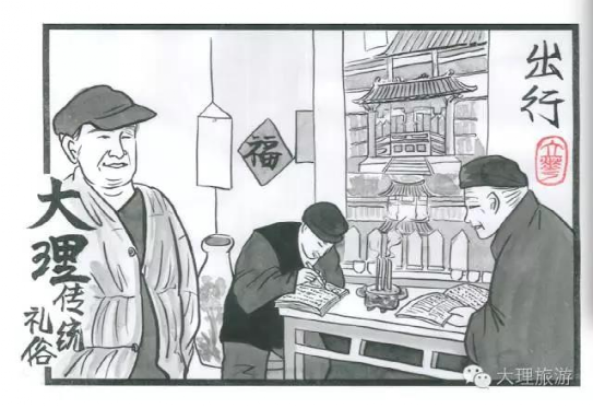 彝族人外出遠(yuǎn)行講究平安。出嫁的姑娘回娘家或從娘家返回婆家,兒女外出上學(xué)、當(dāng)兵,男人出遠(yuǎn)門辦事、外出做生意等,都講究出行的日子,即每月農(nóng)歷初一和十五不能出門,單日也不能出門離家,只有雙數(shù)才能出門,長(zhǎng)時(shí)間離家的,離家前還要?dú)㈦u煮肉祭祀天地神和祖先,以求保佑出行者平安無恙,祭祀后,還要看卦。