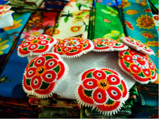不得不說,每一個惠安女似乎都是天生的刺繡好手,即便是單調(diào)的布料,簡單的幾何圖形,在她們的手中能成為搭配巧妙的服裝。