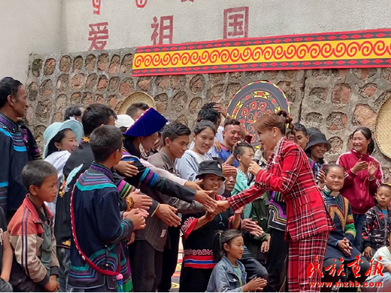 烏蘭圖雅在廣西河池市環(huán)江縣演出后與各族群眾合影留念。