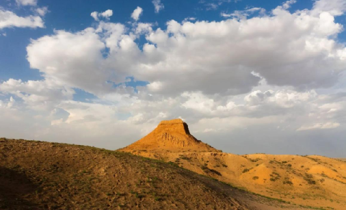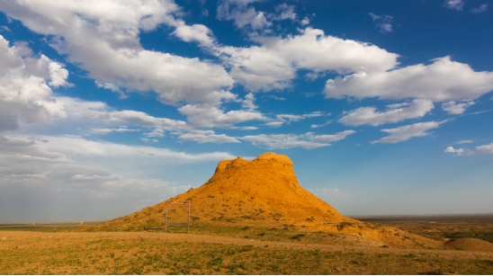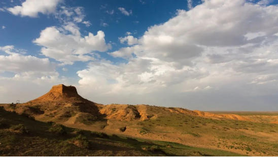 (東紅烽火臺,位于海南區(qū)巴音陶亥鎮(zhèn)東紅村,整體為紅黏土夯筑而成,現(xiàn)高9.3米)