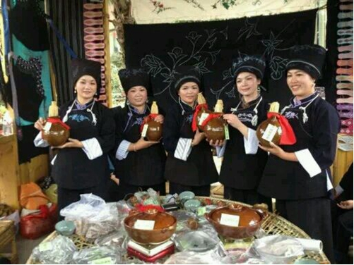 貴州惠水長安布依族是好客的民族,他們常用酒來表達(dá)自己的好客、無私、友好、熱情,但敬客酒的習(xí)俗又依村寨不同,形式和內(nèi)容也不相同。布依族敬客,先由男主人向客人敬酒,每人必須先喝兩杯,寓意“ 你是用兩只腳走來的” ,這兩杯酒都要一飲而盡,第三杯開始,主人便可隨意。待到一定時候,其主人便同姑娘、媳婦們一起上陣,手持酒海(盛酒的土缽)、酒碗站立客人身后以歌敬酒。先從長者開始敬完一輪,再反方向敬一輪。有的好客者,為挽留客人住下,婦女們就會選擇一“ 關(guān)鍵” 客人,力促將其灌醉,使得“ 群龍無首” ,只好乖乖留下。布依人家真情可謂“ 酒如其人” ,令人陶醉。
