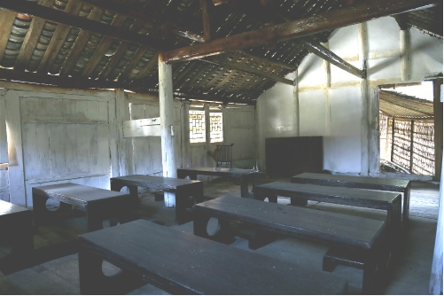 第一棟陳列館里還有一個(gè)十分特別的房間,它在大門右邊的倉(cāng)庫(kù)上面,是一個(gè)小小的私塾教室。