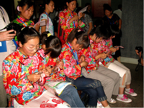 內(nèi)蒙古和林格爾剪紙是中國(guó)北方剪紙最具代表性的剪紙文化遺存之一,是由世代生活在和林格爾地區(qū)的農(nóng)牧民勞動(dòng)?jì)D女為主體創(chuàng)造的,經(jīng)過(guò)代代傳承發(fā)展,成為承載本土民族文化基因的重要的非物質(zhì)文化。二十世紀(jì)七、八十年代以來(lái),隨著經(jīng)濟(jì)社會(huì)向工業(yè)文明的急速轉(zhuǎn)型,人們的生產(chǎn)、生活方式和觀念發(fā)生了重大轉(zhuǎn)變,和林格爾剪紙面臨消亡的境地。老一輩和林格爾民間剪紙傳承人大都生活窘困,有許多已相繼辭世,她們長(zhǎng)達(dá)七、八十年藝術(shù)實(shí)踐所形成的這一古老文化傳承也因此面臨人亡藝絕,而年輕一代剪紙隊(duì)伍又尚未形成,和林格爾剪紙的發(fā)展出現(xiàn)了青黃不接的瀕危狀況。帶著全社會(huì)的關(guān)注,1998年7月10日,在時(shí)任和林格爾縣委宣傳部長(zhǎng)姚子明同志的支持下,和林格爾縣成立了內(nèi)蒙古自治區(qū)第一個(gè)旗縣剪紙學(xué)術(shù)組織——和林格爾剪紙學(xué)會(huì)。和林格爾剪紙學(xué)會(huì)的成立,是和林格爾剪紙文化事業(yè)發(fā)展的一個(gè)里程碑和轉(zhuǎn)折點(diǎn)。多年來(lái),和林格爾剪紙學(xué)會(huì)克服困難,深入搶救、發(fā)掘、整理和保護(hù)了縣境一大批珍貴的原生態(tài)剪紙遺存和老一輩剪紙傳承人。從1994年到2010年,共已累計(jì)搶救、發(fā)現(xiàn)珍貴的原生態(tài)和林格爾剪紙七萬(wàn)余幅,發(fā)現(xiàn)和保護(hù)老一輩剪紙傳承人2600余人,其中有140余名70歲以上的老一輩剪紙傳承人,學(xué)會(huì)做為重點(diǎn)搶救、考察對(duì)象而開(kāi)展了全年跟蹤式搶救、保護(hù)和記錄。和林格爾剪紙學(xué)會(huì)對(duì)已發(fā)現(xiàn)的老中年剪紙傳承人給予物質(zhì)獎(jiǎng)勵(lì)和精神關(guān)懷,激活了人們對(duì)于剪紙傳承的積極性和創(chuàng)作熱情,以農(nóng)村婦女為主體的傳承群體又重新拿起剪刀,開(kāi)始了剪紙的傳承和傳播。多年來(lái),和林格爾剪紙學(xué)會(huì)在段建珺會(huì)長(zhǎng)的帶領(lǐng)下,以“讓老大娘們重新拿起剪刀,讓年輕一代傳承剪紙”為宗旨,積極開(kāi)展各類(lèi)剪紙活動(dòng),努力探索剪紙?jiān)谛滦蝿?shì)下的教育傳承和發(fā)展工作,涌現(xiàn)出以張花女、段建珺等為代表人物的一大批才華橫溢,在國(guó)內(nèi)外有影響的杰出剪紙傳承人和經(jīng)典剪紙作品。百歲剪紙大師張花女出生于清代光緒年末年,剪紙學(xué)會(huì)發(fā)現(xiàn)她時(shí),老人已是96歲高齡。在學(xué)會(huì)的幫助下,她重新拿起剪刀,傳承和創(chuàng)作了大量剪紙,堪稱(chēng)珍品。張花女的作品,將剪和紙的特性發(fā)揮到了幾盡完美的境界,圓潤(rùn)而不浮華,凝重而不果板,簡(jiǎn)約而不單簿,通俗而不失典雅。她剪的《魚(yú)龍變化》、《蒙人進(jìn)城》、《碾場(chǎng)》等作品,反映了遠(yuǎn)古時(shí)期仰韶文化與紅山文化、中原文明與草原文明在該區(qū)域碰撞、交流、融合的歷史遺存,具有很高的藝術(shù)考古價(jià)值。在長(zhǎng)達(dá)一個(gè)多世紀(jì)生命的最后幾年中,張花女用剪刀和紅紙創(chuàng)造了一個(gè)當(dāng)代中國(guó)剪紙的神話。