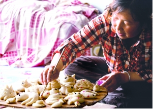 在和林格爾縣的廣大農(nóng)村地區(qū),有些年長(zhǎng)的婦女幾乎都是技藝高超的面塑高手。就捏制風(fēng)格來說,和林地區(qū)面塑風(fēng)格古樸、粗獷、豪放、深厚,卻不乏細(xì)致、優(yōu)美、精巧。它主要以以面粉為主料,調(diào)入不同色彩的食用顏料,用手指和簡(jiǎn)單工具剪刀、梳子、篦子、竹針等,塑造各種栩栩如生的形像。
