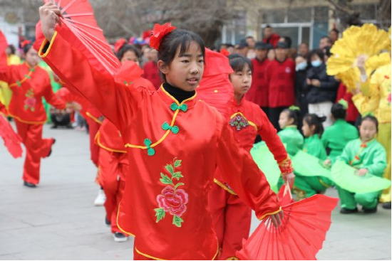 在[資2]讓人流連忘返的民俗演出中,最引人矚目的便是來自討思浩小學(xué)的學(xué)生們帶來的自“天倉節(jié)”祈福儀式演變而成的“天倉舞”表演,孩子們有板有眼的舞蹈動作完全不遜色于專業(yè)的演出隊伍,不僅將討思浩特有的傳統(tǒng)民俗淋漓盡致的展現(xiàn)出來,更是對西北農(nóng)耕文化的有力傳承。據(jù)介紹,2018年12月開始,村委會聯(lián)合討思浩小學(xué)于每周五下午開設(shè)了民俗文化特色課,天倉舞傳習(xí)、民俗歷史講座等內(nèi)容的設(shè)置,讓孩子們對家鄉(xiāng)的歷史文化更加了解,增添了對家鄉(xiāng)的認同感,也讓保留了幾百年的民俗文化得到了傳承。