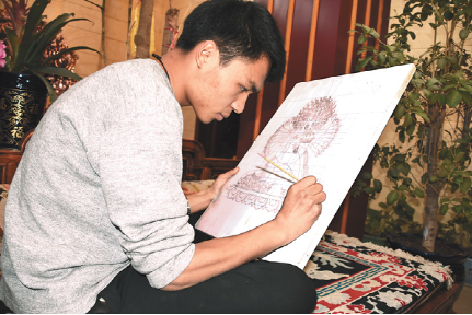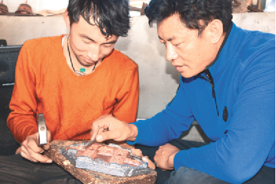 技藝上的登峰造極,次嘎把這一秘笈歸結(jié)成幾個(gè)平常的字眼:“興趣和堅(jiān)持”。從小受家族文化的熏陶,兩個(gè)兒子對(duì)傳統(tǒng)文化有著濃厚的興趣。薪火相傳也成了次嘎肩上的責(zé)任。20出頭的大兒子扎西拉達(dá)穿著白T恤,皮膚白皙、手指纖長、陽光帥氣,立志要子承父業(yè)?!案赣H告訴我即便是要做一名手工藝人,也不能放棄對(duì)文化知識(shí)的學(xué)習(xí),從小便把我送到內(nèi)地學(xué)習(xí)。現(xiàn)在,我長大了,該回來了。” 扎西拉達(dá)的話語堅(jiān)定。