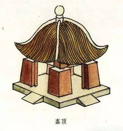 盝頂,是一種較為特別的屋頂形式。這種屋頂形式是在屋頂上有四條與屋檐平行的屋脊,四條屋脊構(gòu)成一個長方形或正方形的平頂,其四角各有一條垂脊向下斜伸,共形成四塊坡檐。盝頂這種頂式在古代大型宮殿建筑中極為少見。