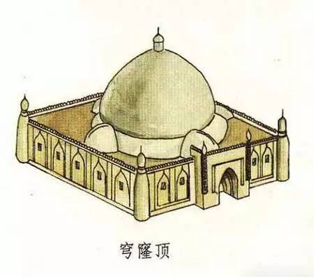 穹窿本身指天空,也形容如天空般中間高、四周下垂的樣子,同時也泛指高成拱形的建筑形式。穹窿頂就是穹窿式的屋頂,一般從外觀來看為球形或多邊形的屋頂形式。如,伊斯蘭教清真寺中的天房,室內(nèi)頂部呈半圓形,就可以叫做穹窿頂。此外,蒙古族的蒙古包等圓頂?shù)拿窬樱部梢詺w為穹窿頂建筑一類。因此,穹窿頂也稱圓頂。