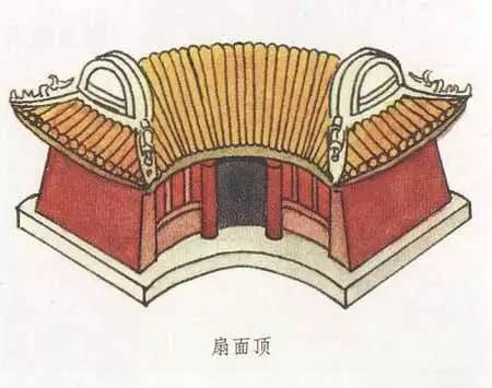 扇面頂和萬字頂一樣,是一種非常別致的屋頂形式,扇面頂顧名思義,就是扇面形狀的屋頂形式,其最大特點(diǎn)就是前后檐線呈弧形,弧線一般是前短后長,即建筑的后檐大于前檐。建筑的西山墻的墻線若向內(nèi)延伸,可以交于一點(diǎn),而這一點(diǎn)就是扇形的扇子柄端。扇面頂?shù)膬啥丝梢宰龀尚?、懸山,也可做成卷棚形式。扇面頂一般都用在形體較小的建筑中,會讓建筑看起來更為小巧可愛。