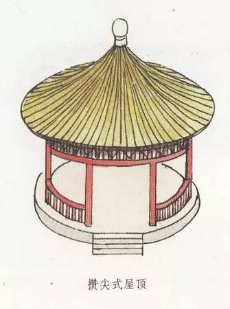 攢尖式屋頂沒有正脊,而只有垂脊,垂脊的多少根據(jù)實際建筑需要而定,一般雙數(shù)的居多,而單數(shù)的較少。如,有三條脊的、有四條脊的、有六條脊的、有八條脊的,分別稱為三角攢尖頂、四角攢尖頂、六角攢尖頂、八角攢尖頂?shù)?。此外,還有一種圓形攢尖頂式,也就是沒有垂脊。
