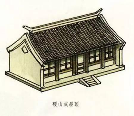 硬山式屋頂有一條正脊和四條垂脊。這種屋頂造型的最大特點(diǎn)是比較簡單、樸素,只有前后兩面坡,而且屋頂在山墻墻頭處與山墻齊平,沒有伸出部分,山面裸露沒有變化。明、清時期及其后,硬山式屋頂廣泛地應(yīng)用于我國南北方的住宅建筑中。正因為它等級比較低,所以屋面都是使用青瓦,并且是板瓦,不能使用筒瓦,更不能使用琉璃瓦。