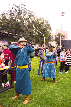 2016年10月22日,中央民族大學(xué)操場(chǎng)上熱鬧非凡。悠揚(yáng)的馬頭琴聲,飄香的奶酒,繽紛絢麗的蒙古族服飾,搏克、射箭等競(jìng)技活動(dòng)以及蒙古族特色產(chǎn)品展銷(xiāo),把首都的一方土地變成了蒙古族傳統(tǒng)節(jié)慶活動(dòng)的歡樂(lè)海洋。據(jù)統(tǒng)計(jì),當(dāng)天有兩萬(wàn)多名在京蒙古族同胞及來(lái)自全國(guó)各地的各族群眾自發(fā)參與了這場(chǎng)民間活動(dòng)。