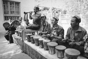 “據(jù)我所知,它和月氏人有點(diǎn)聯(lián)系?”我想起曾經(jīng)看到的一個(gè)資料問道。艾克山·艾爾肯放下木棍,沉吟了一下說:“有兩種說法,一種是東傳說。約在14世紀(jì)以前,納格拉經(jīng)絲綢之路從阿拉伯地區(qū)東傳到古代西域,非常受歡迎,一下子就在維吾爾族民間廣為流行起來。后傳至中原,清代將其列入回部樂中,當(dāng)時(shí)稱為‘哪噶喇’?!彼nD了一下后,接著說:“還有一種是西去說,就是和月氏人有關(guān)?!?/p>
