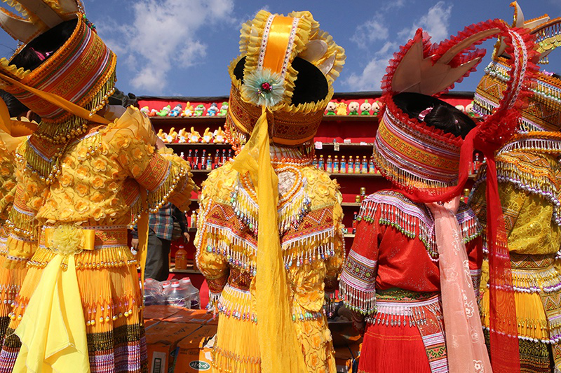 從老撾來參加踩花山的苗族女子樂隊(duì)