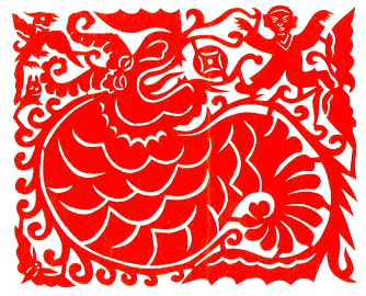 苗族民間剪紙的獨特之處還表現(xiàn)在構(gòu)思的新穎奇妙上。如《姜央兄妹合磨成親》圖,藝人為了擴(kuò)大意境,打破了時間與空間的限制,把發(fā)生在不同時間與空間的事物描繪在一幅畫面上。作者大膽而巧妙地把畫面分成天空、山頂和山腳三部分,來表現(xiàn)三個不同的情節(jié)。天上飛的是蝴蝶和山雞,山頂上站著拍手叫好的姜央,山腳下站著姜央的妹妹以及已合上了的石磨,還有被從山頂上滾下來的石磨嚇驚了的野兔。這幅畫面生動形象地描繪了洪水泛濫后,地上的人都被淹死了,姜央和妹妹藏在葫蘆中幸免于難,為了繁衍人類,兄妹只好成親等情節(jié),非常巧妙地使這一遠(yuǎn)古傳說得到精致的再現(xiàn)。又如三接式袖花剪紙圖案,畫面中間是雙象斗獸,上方是人馴蠶身龍,下面是龍象相爭,其余空處是魚鳥蟲蝶。這種奇特的構(gòu)思,把原始社會人與自然的關(guān)系表現(xiàn)得淋漓盡致。