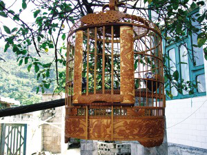 選材和傳統(tǒng)工藝是布依族鳥(niǎo)籠制作的兩大關(guān)鍵環(huán)節(jié)。最好的用材是優(yōu)質(zhì)畫(huà)眉竹、毛竹和青竹。竹材的采伐時(shí)間,有嚴(yán)格的要求,一般是在每年的秋收以后到第二年的正月間最為合適。其它時(shí)間采伐的竹材水性重,易蛀蟲(chóng)。至于竹材,則以生長(zhǎng)5到7年的竹子最為理想。這種年齡的竹料柔韌、堅(jiān)硬、鮮亮。布依族鳥(niǎo)籠全由精雕細(xì)鏤的各式竹節(jié)(條)組合而成,構(gòu)成部件做工精細(xì)。雕飾分花、素兩款,樣式有方、圓兩類(lèi)。雕花鳥(niǎo)籠,從取材到最后組裝完成,需10天左右。鳥(niǎo)籠雕刻圖飾有“雙鳳朝陽(yáng)”、“二龍戲珠”和“蝴蝶結(jié)”等等。