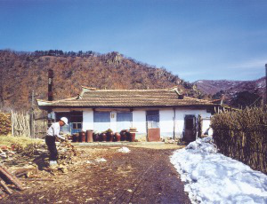 朝鮮族聚居的長(zhǎng)白山區(qū),山巒起伏,河流縱橫,村落都是背山面水,房屋坐北朝南。村落的大小主要是依開墾耕地的多少而建,街道依山勢(shì)自然形成,東西方向較長(zhǎng),村屯之間以稻田相連。