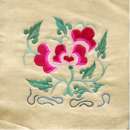 傳統(tǒng)意義上的滿族刺繡源于民間,流行于遼寧、吉林、黑龍江等滿族聚集地,屬于一種民間手工技藝。滿族民間刺繡,俗稱“針繡”、“扎花”、“繡花”,具有強(qiáng)烈的民族、地域特色,其造型夸張、粗獷、拙樸,色彩艷麗,冷暖對(duì)比強(qiáng)烈,構(gòu)圖細(xì)膩,情感樸實(shí)。