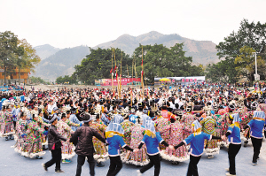 2012年12月18日,貴州省榕江縣2000多名少數(shù)民族同胞盛裝出行,歡慶薩瑪節(jié)?!八_瑪”是侗族母系氏族社會(huì)時(shí)的女英雄,侗語(yǔ)意為“大祖母”。薩瑪節(jié)被譽(yù)為“侗族的婦女節(jié)”。2006年,侗族薩瑪節(jié)被列入第一批國(guó)家級(jí)“非遺”名錄。