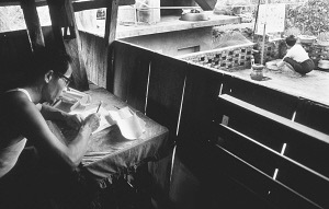 從前的“朵薩拉”是用芭蕉葉做的,現(xiàn)在有紙了,就把字寫在紙上,再用芭蕉葉卷起,用細(xì)篾絲捆扎好(因?yàn)樵诎沤度~上寫字實(shí)在不好寫,就做了一些改進(jìn))?!岸渌_拉”里裹寫著的是各家各戶賧奉物品的姓名、清單、及賧奉人的愿望,老人們把10個“朵薩拉”捆成一捆,分發(fā)給來自全壩子14個緬寺的19個大佛爺和137個小和尚。這次全村共賧奉了3059份物品,每個佛爺兩捆“朵薩拉”,小和尚一捆,剩余的全奉給緬寺。