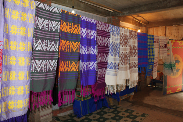 云南傣錦歷史悠久,風(fēng)格古樸,以其織工精巧、圖案別致、色調(diào)鮮艷、堅(jiān)牢耐用和富有民族特色而著稱。它主要流傳和盛行于云南省南部的西雙版納傣族自治州,西南部的德宏傣族景頗族自治州、耿馬傣族佤族自治縣、景谷傣族彝族自治縣,以及孟連傣族拉祜族佤族自治縣等傣族較聚居的區(qū)域。云南傣錦是一種以絲線、毛線、棉線、麻線、晴綸線、金絲線等材料為原料,采用傣族傳統(tǒng)的木架織機(jī)手工操作,經(jīng)提花、織造等工藝形式制作成的長(zhǎng)條形織錦物,是云南的傣族人民從事宗教活動(dòng)和美化生活必不可少的物品。傣錦長(zhǎng)短不一,幅寬一般為20-60厘米不等。因其花紋絢麗多彩、形象生動(dòng)、變化多端 、呈立體形,在云南少數(shù)民族織錦中獨(dú)樹一幟,享有很高的聲譽(yù)。傳統(tǒng)的云南傣錦按構(gòu)成形式和材料主要有兩種即西雙版納傣錦和德宏傣錦。西雙版納傣錦以白色為底,用紅色和黑色緯線織成花紋,傣錦線條寬窄有致,形體夸張簡(jiǎn)練,圖案較為規(guī)律化,具有粗獷的質(zhì)樸感和濃厚的裝飾性;而德宏傣錦則色調(diào)較為濃重,常用黑、紅、翠綠、黃、藍(lán)等濃艷色彩的絲線和棉線摻用金絲錦線織制,圖案以菱形、方形、六角形及回形紋等幾何形為主,織錦鮮艷奪目,結(jié)構(gòu)嚴(yán)謹(jǐn),紋飾古雅,尤顯華麗。