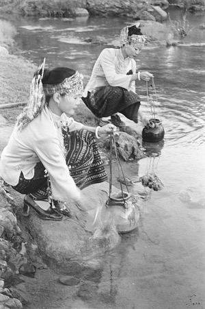 據(jù)說過去的黎家風(fēng)俗是新娘挑滿水缸后,就與新郎、伴娘一起到河里網(wǎng)魚、摸螺。邊摸螺,邊唱山歌。伴娘和姐妹們會(huì)把新郎拉來嬉水,伴郎與阿哥們也不甘示弱,也向伴娘和姑娘們嬉水,你澆過來我澆過去,姑娘小伙樂陶陶。因此,保亭黎族嬉水節(jié)便是從婚俗引發(fā)出來的又一歡樂節(jié)日。