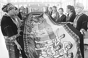 歷時一年時間織造,長186.7米黎族民俗風(fēng)情長卷織錦壁掛《錦繡黎家》,日前喜獲上海大世界基尼斯世界紀(jì)錄證書,成為世界織錦項目之最。這幅黎錦長卷由海南省民族研究所織錦工藝研究人員設(shè)計,五指山鑫達民族織錦旅游開發(fā)中心于2012年4月初,在三亞檳榔河國際鄉(xiāng)村文化旅游區(qū)開始織造工作。