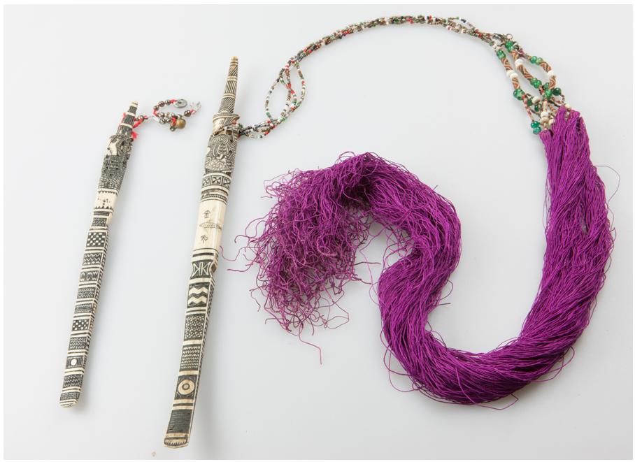 相比骨簪作為物件的本身,黎族待物的方式以及生活本身,更體現(xiàn)其本身的日用之道。作為一門集祖先崇拜、工藝美學(xué)、力量與想象結(jié)合的技藝,不只體現(xiàn)人與物的功能性關(guān)系,更在其中牽涉“我”與自然、與他人、與社會(huì)之間更為復(fù)雜而有趣的關(guān)聯(lián)。