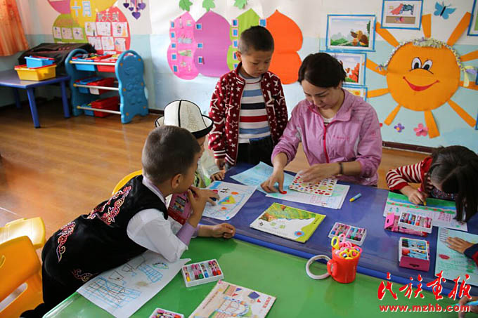 古麗孜娜提說,在她兒時(shí)記憶中,縣里的幼兒園、小學(xué)和中學(xué),只有幾排墻皮斑駁的平房和破桌椅。因條件太差,父母都想方設(shè)法將子女送到數(shù)百里外的城市讀書?,F(xiàn)在,幼兒園里,語音室、科學(xué)活動(dòng)室、舞蹈室等一應(yīng)俱全,雙語教師、保育員等人員也按相應(yīng)比例配備到位??h交通部門還安排兩輛專線車每天免費(fèi)接送第三幼兒園師生。能在條件這么好的幼兒園工作,她感到由衷的欣慰,同時(shí)也感到了壓力。