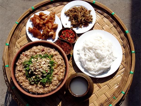 阿昌族還喜歡吃竹筍、竹蛆和蜂蟲(chóng)、蜂蛹等。竹筍的吃法有鮮竹筍、干竹筍、腌酸筍等。鮮竹筍肉嫩細(xì)香,可當(dāng)蔬菜,也可與肉、豆類等炒著吃。竹蛆是一種生在嫩竹中的蟲(chóng)蛹,色白個(gè)大,肉肥細(xì)嫩。有時(shí)一節(jié)竹子中有數(shù)百條,取出后用油炸脆,色澤金黃,撒點(diǎn)鹽而吃,是一種高蛋白鮮美食品。食用的蜂蟲(chóng)、蜂蛹主要有黃腰蜂、夜時(shí)蜂、草蜂等土蜂類的蛹和幼蟲(chóng)?;蛘ɑ虺?,香脆可口,營(yíng)養(yǎng)豐富。
