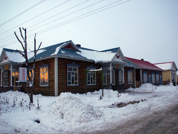 俄羅斯族的住房多為土木結構的平房。房屋十分高大,墻體厚實,可以起到很好的防風保暖,抵御寒冷的作用,夏季房間內溫度涼爽,是真正的冬暖夏涼的居民建筑。木刻楞房是俄羅斯族最為典型的民居住房。