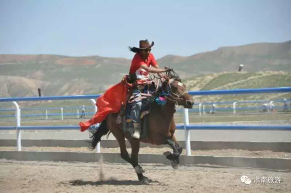 裕固族人民非常喜愛賽馬。和蒙古族等歷史上的游牧民族一樣,裕固族也被稱為“馬背上的民族”。裕固族在傳統(tǒng)節(jié)日、廟會(huì)、祭祀、婚禮等重大場(chǎng)合都要舉行賽馬活動(dòng)。平時(shí),青年男女走到一起,為了比試騎術(shù)高低、坐騎優(yōu)劣,經(jīng)常即興比賽。大家議定一座山、一棵樹或一戶人家為終點(diǎn),一人吆喝,眾人揚(yáng)鞭催馬飛奔。正規(guī)的賽馬活動(dòng)則由要組織,馬匹少則數(shù)十匹,多則上百匹。