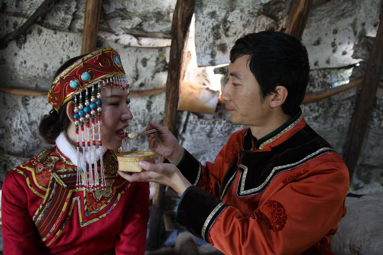 女方的父母不參加女兒的婚禮和婚宴,送親的人返回時(shí),要給他們捎回一份最好的酒肉。男女雙方如果同在一個(gè)“烏力鄰”,婚后三日新郎陪新娘“回門”,探望新娘的父母,但不能留宿,要當(dāng)天返回婆家。如果雙方“烏力鄰”相距較遠(yuǎn),結(jié)婚一個(gè)月后,小夫妻騎馬回娘家探親,不僅探望父母,還要拜訪所有的親屬,可以留住幾天甚至幾個(gè)月。