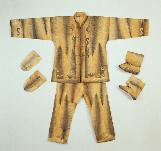 以魚皮為衣,是赫哲族傳統(tǒng)服飾習(xí)俗的一個(gè)顯著特點(diǎn)。各種各樣的魚皮,具有各自的用途。例如,懷頭魚皮可以做手套、褲子、套褲、鞋幫、綁腿,大的懷頭魚皮還可以做口袋;細(xì)鱗魚、哲羅魚、鰉魚、大馬哈魚等魚的魚皮,既可以做手套,又可以做靰鞡;鯉魚皮、趕頭魚皮可以做衣服和褲子;胖頭魚皮、狗魚皮可以做褲子和魚皮線。用魚皮做的衣服古樸美觀,結(jié)實(shí)耐用,主要有“烏提口”(女式魚皮上衣)、“奧約刻” (男式魚皮套褲)、“嘎榮”(魚皮女套褲)等。