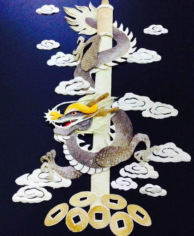 制作魚皮畫,首先必須對(duì)魚皮進(jìn)行加工處理。手工費(fèi)時(shí)大約3天,要經(jīng)過剝制,晾干去鱗、晾曬魚皮、捶熟、漂色等許多細(xì)致環(huán)節(jié)。魚皮畫分為粘貼和鏤刻兩種。粘貼畫制作相對(duì)來說較為容易,先勾勒出初稿,然后選好底襯,再選適當(dāng)?shù)聂~皮進(jìn)行剪制。這一步驟特別重要,首先要確定要粘貼的部位,來選則魚皮的顏色,剪完之后,就可往底紙進(jìn)行粘貼了,一幅魚皮畫也就完成了。內(nèi)容一般生活方面的事物,還有動(dòng)物、人物等等。魚皮鏤刻是先選好魚皮,一般都是選擇比較大的魚皮,有陰刻和陽刻兩種,在魚皮的反面進(jìn)行勾畫(也可直接剪制 ) 經(jīng)過剪刻完成。