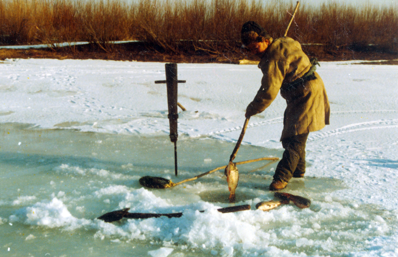冬季鑿冰叉魚的達斡爾族(劉軍攝)