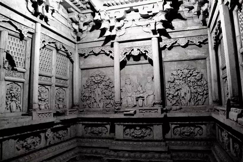 中國磚雕是由東周瓦當、空心磚和漢代畫像磚發(fā)展而來的。漢代畫像磚是墓室預制構件的大型空心磚,它是在濕的泥坯上用印模捺印各種圖像。北宋時形成磚雕,成為墓室壁面的裝飾品。在河南、山西、甘肅等地發(fā)掘的北宋墓室,三面墻壁均以磚雕貼砌而成。墓室內(nèi)的磚雕數(shù)量、質(zhì)量以及所選用的題材,都取決于墓室主人的社會地位。常見的題材有墓室主人夫婦對坐、男仆托盤、侍女執(zhí)壺等,再現(xiàn)了墓室主人生前的生活情景。金代,墓室磚雕的內(nèi)容更加豐富,技藝也有所提高。
