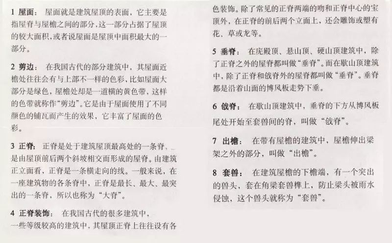 中國(guó)古代建筑屋頂不僅樣式多,而且組成部分也有好幾種,主要由屋面、屋脊等部分組成,而且有嚴(yán)格的等級(jí)制度。
