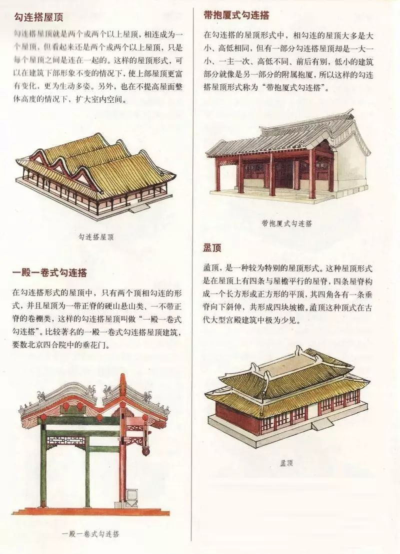 中國(guó)古建筑屋頂千變?nèi)f化,瑰麗多姿,不同的屋頂相互組合、穿插,又會(huì)形成不同的屋頂形式。